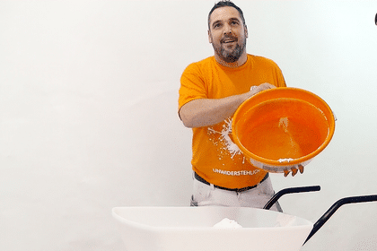 Anwender kennen das zur Genüge: Beim Einfüllen der Spritzspachtel in die Verarbeitungs-Maschine bleiben immer Reste der zähen Spachtelmasse im Eimer kleben. Diese müssen oft mühsam mit Spachtel oder Kelle herausgeputzt werden. Das ist aufwändig und lästig. Mit der Spritzspachtel mit dem „Plopp“ von Synthesa – die Masse ploppt wie frischer Topfen beinahe rückstandsfrei in die Maschine - wird dies verhindert und erleichtert die Verarbeitung.