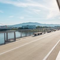 Die Brücke nach dem ausgezeichneten Entwurf von Marc Mimram Architecture Ingénierie, Paris, von ist nicht nur eine technische Meisterleistung sondern auch ein städtebauliches und ästhetisches Statement. Elegant, federleicht und zugleich „spacig“ spannt sie die Brücke mit ihren drei Bögen zwischen Linz-Unterer Donaulände und Urfahr. Mit der Fertigstellung und der Verkehrsfreigabe 2021 wurde der motorisierten Individualverkehrs in Linz entschärft. Die alte um 1900 errichtete Eisenbahnbrücke wurde im Sommer 2016 als nicht mehr sinnvoll restaurierbar abgebaut.