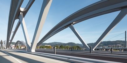 Um diese vor Wind, Wetter, Wasser und sonstigen Einwirkungen zu schützen, ist der Einsatz von Korrosionsschutzmitteln notwendig. Hier griffen die Planer und Techniker der „schönsten Brücke Österreichs“ auf die hochwertigen Produkte der Marke AvenariusAgro zurück. Rund 45.000 m² der Stahlkonstruktion erhielten eine Beschichtung mit passgenau auf die Verhältnisse abgestimmten Korrosionsschutz. Beschichtet wurden alle luft- und betonberührten Stahlbauteile, Geländer, Abdeckbleche, Kabelkanalbleche, Lager, Fahrbahnübergänge sowie die Geh- und Radwegflächen“ erklärt Dominik Bumberger, Technischer Fachberater für Korrosionsschutz in der SynthesaGruppe.