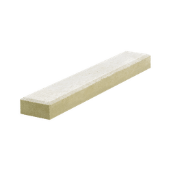 Einseitig weiß vorbeschichtete, streifenförmige Lamellenplatte aus Mineralfaser mit vorgefertigter, umlaufender Fase für unterseitige Dämmung von Keller- und Garagendecken.