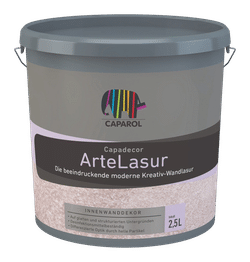 ArteLasur kann über ColorExpress nach ca. 350 Farbtönen in Anlehnung an das Caparol 3D-System plus ausgemischt werden. Hierbei muss berücksichtigt werden, dass die Farbtöne zum Einen aus der dafür erstellten ColorExpress-Kollektion "CD ArteLasur" ausgewählt werden müssen, zum Anderen sich der Lasurfarbton auf der Wand infolge seines lasierenden Charakters, der Auftragstechnik, der jeweiligen Schichtstärke und des Farbtons des Untergrundes vom Original 3D-Farbton unterscheidet.