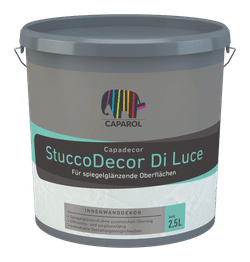 Hinweis: Das Polieren der Fläche unter Zuhilfenahme von Maschinentechnik sollte aufgrund der damit verbundenen Risiken nur von versierten Verarbeitern durchgeführt werden. Ein vergleichbarer Glanz kann mit einer dritten Spachtelschicht und anschließendem Polieren mit der Federblattspachtel erzielt werden. Gestaltungshinweise:Glättetechniken mit StuccoDecor DI LUCE leben von einem faszinierenden Wechselspiel mit Lichtreflexionen aus tieferliegenden Spachtelschichten und Spiegelungen an der Oberfläche. Ein zusätzlicher Glanzüberzug ist nicht erforderlich! Durch Variation der Arbeitstechnik kann die Oberflächenoptik individuell gestaltet werden.