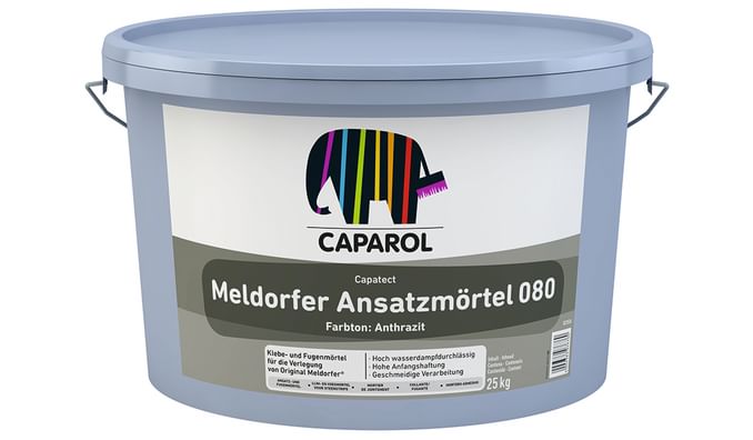 Der Capatect Meldorfer Ansatzmörtel 080 ist stets streifenförmig innerhalb der Höhenmarkierungen aufzutragen und mit der Meldorfer Zahnkelle 098 (Zahnung 4 x 6 mm) in Verlegerichtung durchzukämmen. Bei der Anwendung des Großformats (GF) eine Zahntraufel 6 x 6 mm verwenden.