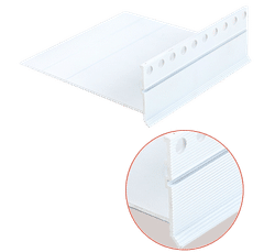 Kunststoff Grundprofil als Fassadenflächenabschluss mit Tropfkante (und damit zur kontrollierten Wasserableitung nach unten) bei zurückversetztem Sockel. Zur Verhinderung von Rissen im Stoßbereich und zur Einbindung in die Flächenarmierung wird nach der Sockel Thermo PLUS Montage das Capatect Aufsteckprofil Rolle Universal aufgeklipst. Die Ausladung des Profils beträgt 10 cm, kann jedoch bei Bedarf aufgrund der vorhandenen Sollbruchstellen auf 8 cm bzw. 6 cm durch einfaches Abknicken gekürzt werden.