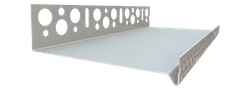 Stabiles Systemabschlussprofil aus Aluminium Trogprofil mit Tropfkante (und damit zur kontrollierten Wasserableitung nach unten) bei zurückversetztem Sockel. Speziell für Capatect Fassadendämmplatten. Zur Verhinderung von Rissen im Sockelschienen-Stoßbereich empfehlen wir das Capatect Sockelschienen-Aufsteckprofil auf Rolle auf die Sockelschiene aufzustecken.
