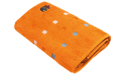 Orange mit dezenter grau-oranger Stick-Musterung und Elefanten-Stickerei. 75% Baumwolle, 25 % Lenzing-Modal Gewebe. Absolut Kuschelweich und fest im Griff. 600 g/m² Topqualität aus Österreich! Größe: 80 x 160 cm